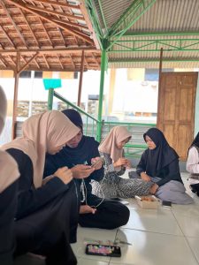 Kegiatan ini berlangsung dengan suasana yang penuh semangat dan kreativitas. Para peserta dibagi ke dalam kelompok kecil yang terdiri dari dua orang, masing-masing diberikan bahan berupa manik-manik dan tali untuk dirangkai. Mereka dipandu langkah demi langkah mulai dari mengikat tali hingga merangkai manik-manik menjadi produk siap pakai yang dapat menghiasi tangan mereka.